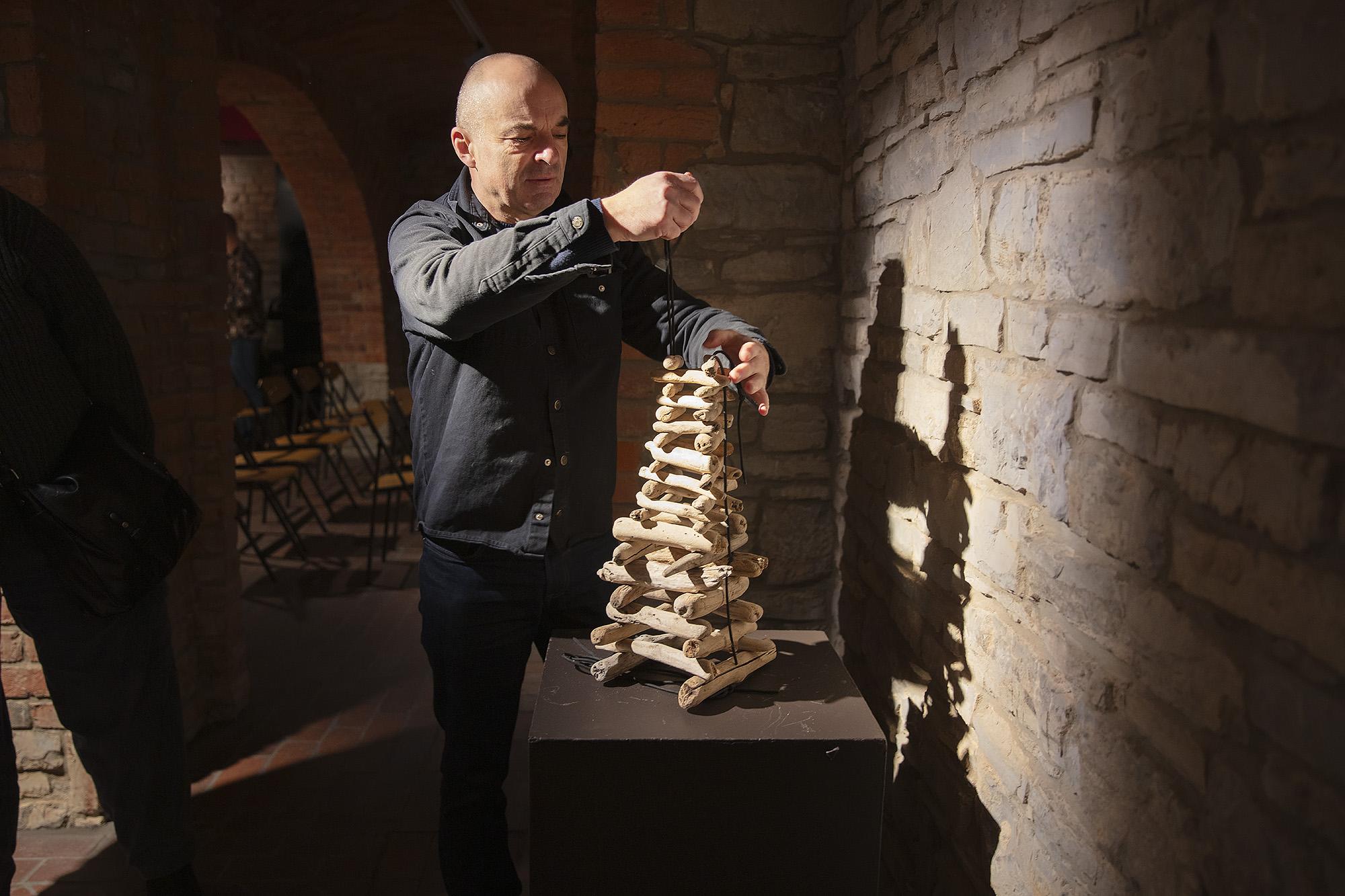 Wystawa posiada specyficzny charakter – ma w sobie lekkość, wywołuje uśmiech i wspomnienie śródziemnomorskich pejzaży, nasuwa też skojarzenia z rekwizytami teatru lalek, zachęcając do wprawiania obiektów w ruch. Na ekspozycję w podziemiu Willi Sixta składa się kilkadziesiąt niewielkich realizacji wykonanych z drewna – patyków i mniejszych gałęzi wyrzuconych przez morze – połączonych sznurkami, dających się animować. Artysta przedstawia także kilka rzeźb z betonu imitujących wielkie kłody drewna przetrawione przez morze.