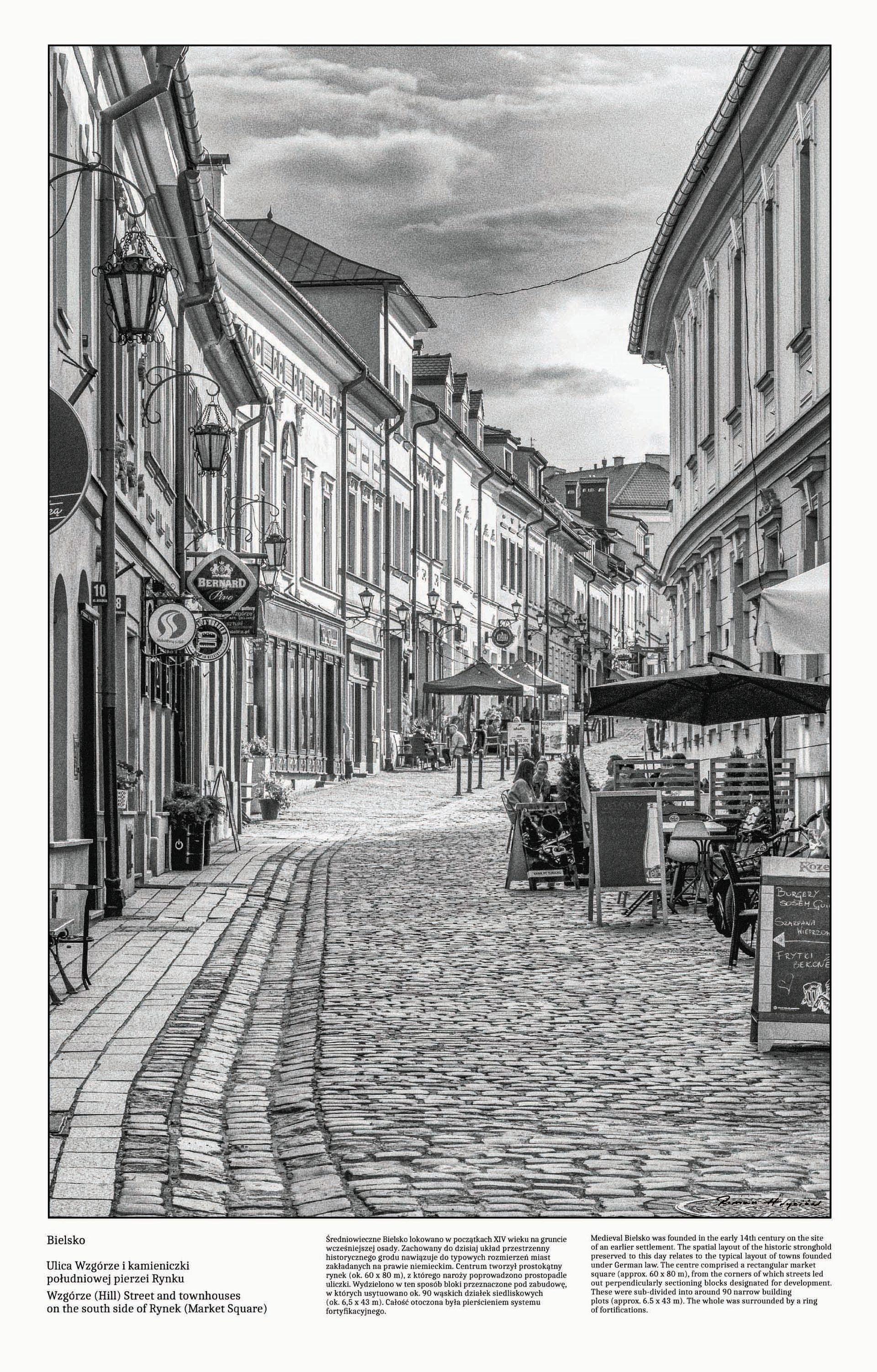 Retrospektywnej wystawie fotografii Romana Hryciowa w górnej sali Galerii Bielskiej BWA „Światłoczułe spojrzenie. 50 lat z fotografią” towarzyszy ekspozycja kilkunastu jego czarno-białych zdjęć Bielska-Białej, będących fragmentem wystawy „Bielsko-Biała – miasto, które mówi obrazami”, prezentowanej latem 2025 roku w zaprzyjaźnionej Ustce podczas Dni Bielska-Białej. Fotografie są osobistą, pełną emocji, opowieścią autora o mieście, które nieustannie inspiruje go i zachwyca. Fotograficznym obrazom fragmentów architektury miasta towarzyszą obszerne opisy autorstwa Piotra Keniga, bielszczanina, historyka, znawcy dziejów Bielska-Białej.